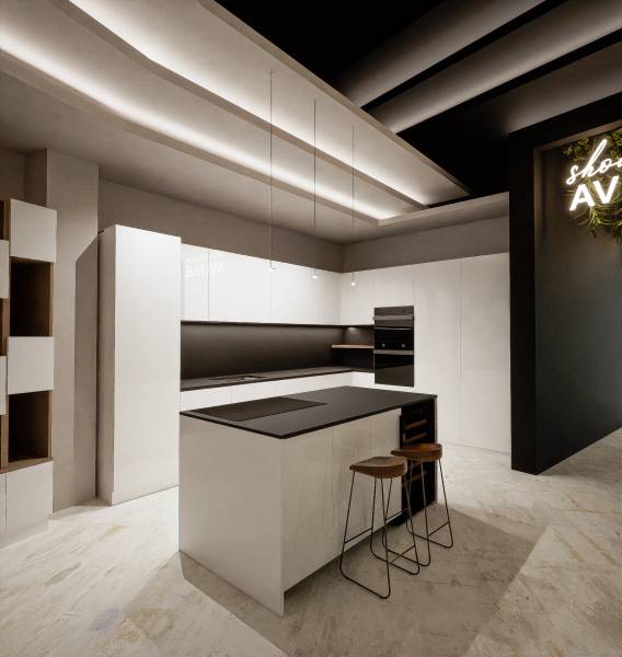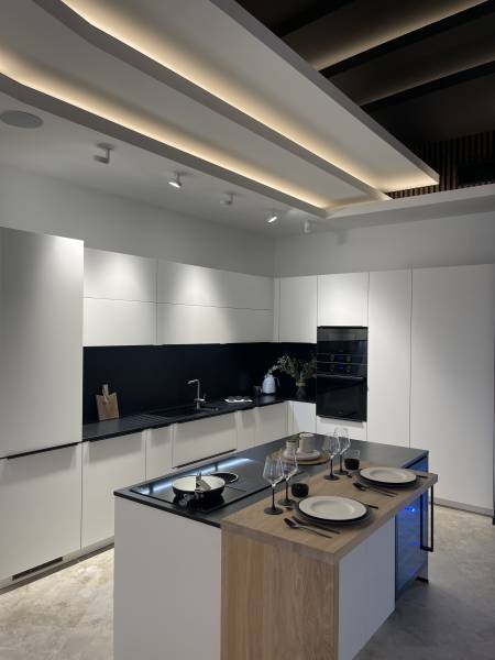 Cuisine noire et blanche - Verre Organique et Granit noir